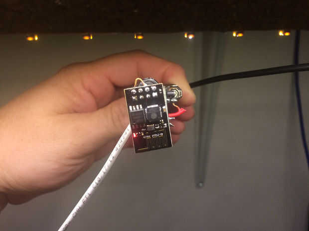 Porque el módulo ESP y el módulo de buck crean calor pongo el sensor en un cable de unas pocas pulgadas de los módulos por lo que hay menos influencia sobre las lecturas.