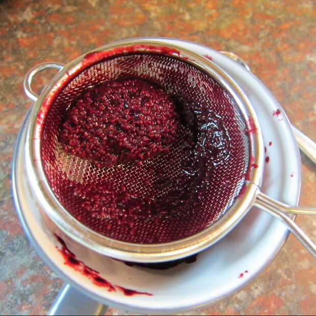 ** Tensión cualquier puré de frutas con semillas no deseadas con un tamiz. Si la fruta es cocinada y mezclada primeras filtra las semillas es muy sencilla y rápida. Lleva mucho más tiempo si usted no sigue estos pasos primero.