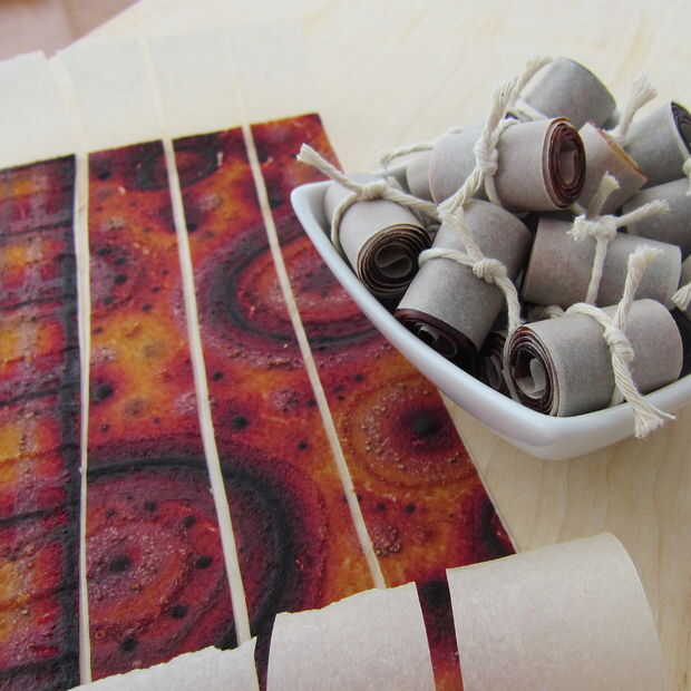 Cortar en tiras con unas tijeras de cocina y rollo en tiras de papel de pergamino. Atar con un trozo de cuerda de carnicero si lo desea. Almacenar en un recipiente hermético. No se preocupe acerca de cuánto tiempo mantendrá debido a no serán tiempo suficiente de todos modos!