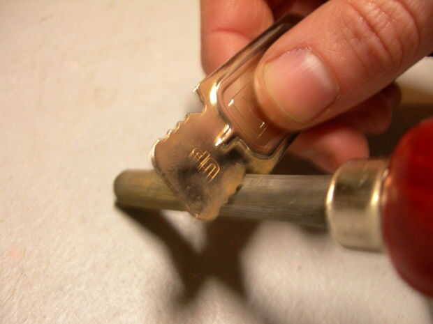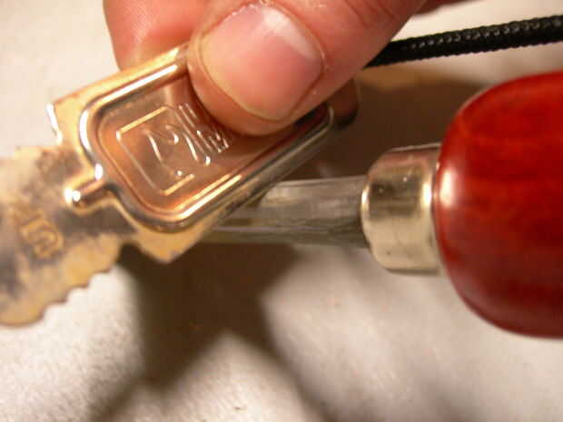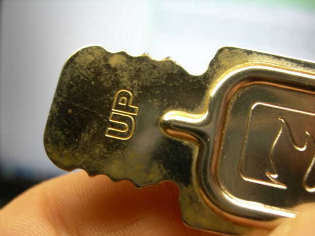 Coloque el extremo de la FireSteel en la base del montículo a ayudar a dirigir las chispas a la yesca. El delantero de la cuerda tiene dos características únicas. Porque el delantero está marcado, el borde del lado relieve es redondeado (la tapa), y la parte posterior tiene una rebaba resultante (el fondo). Como el logotipo de "up" es hacia usted, puede utilizarse cualquier borde en el delantero (el lado dentado parece áspero para arriba el FireSteel). Si usted no quiere molestar con que lado del delantero tiene las rebabas y no te importa opacar una hoja, el movimiento de corte de un cuchillo parece hacer el truco. Si tiene experiencia, puede conseguirlo en el primer intento (todavía tengo que hacer esto). Si no le dan varios intentos más luego reorganizar su montículo o añadir más Yesca para aumentar tus posibilidades.