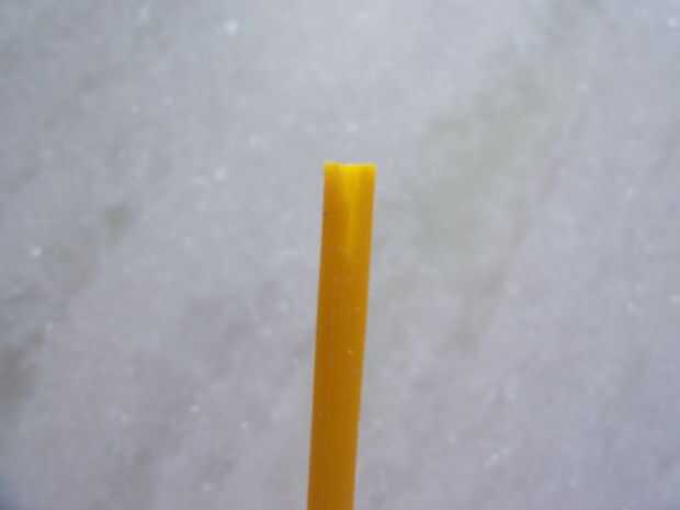 Necesitamos espacio en nuestro circuito, pero no conseguimos un lápiz de tal espesor (2-3 mm). Hacemos tan nuestro propio con un palito de paleta.