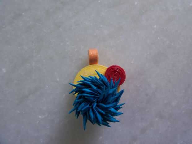 - Ahora uso este palillo del lollipop como su pluma quilling y hacer el lazo con una tira de longitud 10 cm de ancho 3 mm. (usé luz naranja!!) Usted notará que se crea suficiente espacio dentro del bucle.