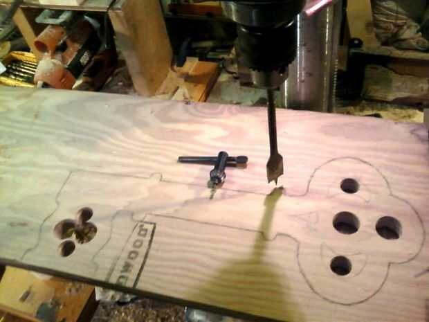 Ayuda a poner un trozo de madera debajo de la madera de que está perforando a través, en orden de reducir la fragmentación en la cara posterior de la pieza.