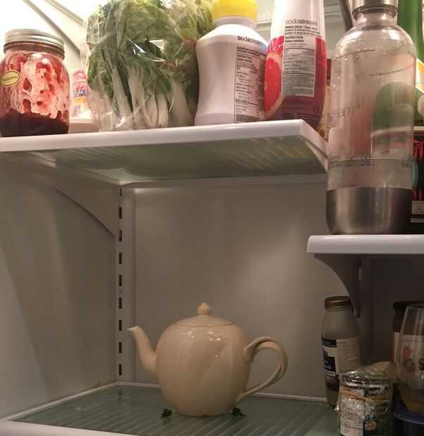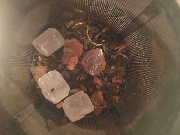 Aquí es donde su té y azúcar de roca viene en. Poner 3 cucharadas de locura de mango, 1,5 cucharadita de earl grey y 1 cucharadita o 4 grandes rocas de azúcar. Verter toda el agua hirviendo en y ajuste el temporizador durante 4 minutos. Cuando el temporizador se apaga saca la desactive y ponga sus hojas en el compost. El azúcar debe ser derretido en y el té debe ser una Scarlett anaranjada. Refrigerar por 8 horas o poner en el congelador durante 2 horas.