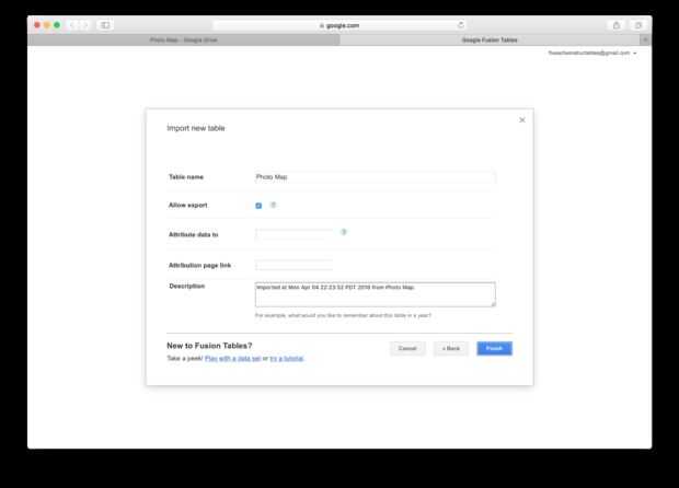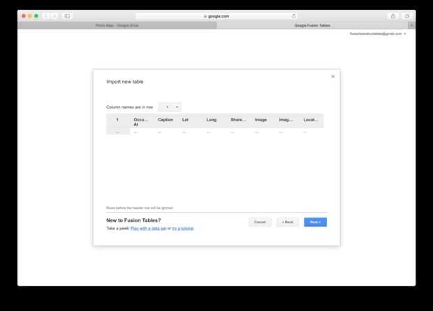 Nota: Si no has creado una tabla Google fusión antes, recomiendo que después de mi anterior Instructables, crear un mapa interactivo de Google para compartir información geográfica y metadatos