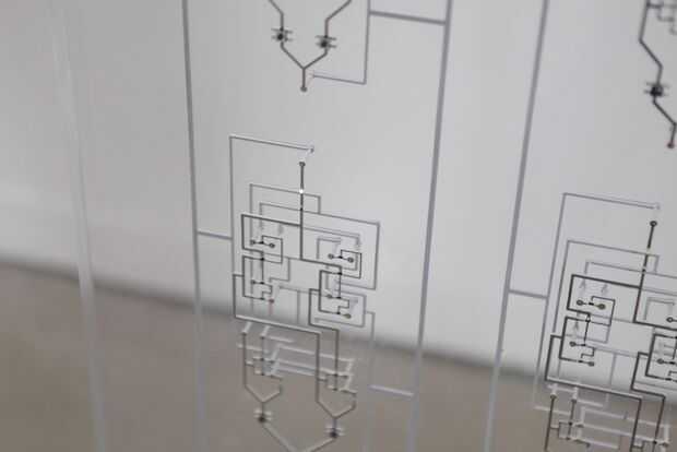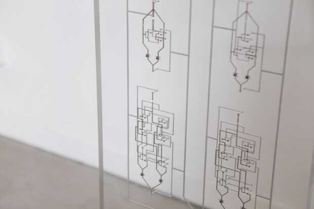 Incrustaciones de la lógica es parte de mi Serie de Sketch de Lógica CMOS y se hizo como un aire (artista en residencia) en el muelle 9. El trabajo en esta serie se centra en las puertas lógicas CMOS como los bloques de edificio fundamentales de la tecnología electrónica digital y hace por lo que puede ser vistos y apreciados.