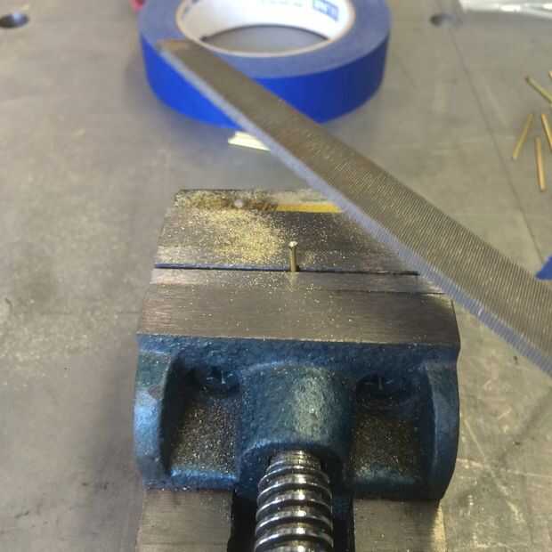 Si tu circuito con incrustaciones tiene múltiples capas que necesitan estar conectado, este paso le mostrará cómo tamaño barras pequeñas y luego los martillo en.