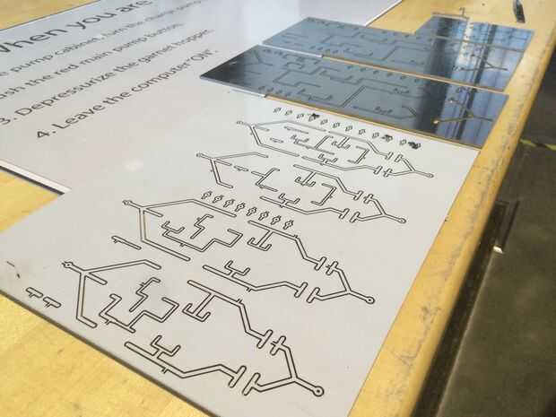 Lo único cuidado aquí son los lugares donde su obra es sobre un listón en la cama por chorro de agua. A veces cuando la corriente alcanza un listón rebota y daña la parte inferior de su material. Para nosotros la parte inferior es la superficie visible. Echa un vistazo a todos tus rastros después de cortar y volver a cortar anyones que fueron dañados.