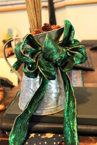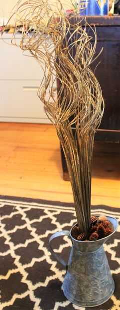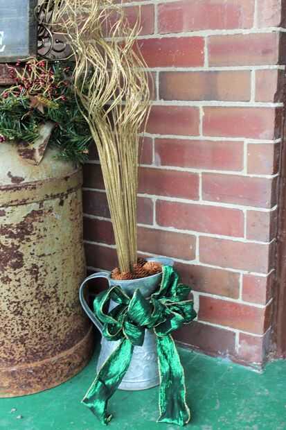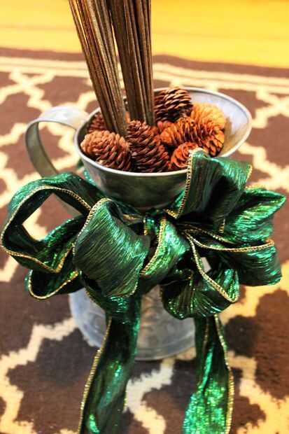 2. Añadir la decoración que está utilizando. Utilicé esta cosa de la flor de oro brillante, pero puede utilizar flores secas, bastones de caramelo, palos, estacas de pino, etc.. También puede colocar una cadena de luces alrededor del.