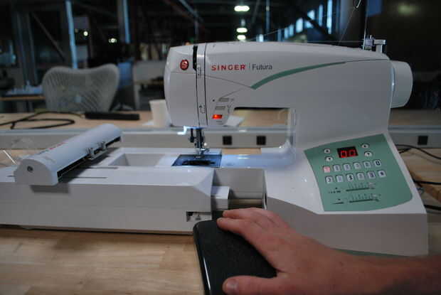 También hay una devanadera de la bobina en la Futura cantante pero es un poco de dolor para utilizar. En orden de la devanadera de la bobina hacer girar realmente tienes que desconectar el accesorio de bordado y desconecte el cable USB de la computadora. La devanadera de la bobina se encuentra en la parte superior derecha de la la máquina. Enrolle el hilo de la bobina hasta el gancho de hilo alrededor del botón de cromo en la parte superior izquierda y de nuevo a la devanadera de la bobina antes de usar el prensatelas para activar la devanadera de la bobina. Sugiero utilizar la devanadera de la bobina en una de las otras máquinas en su lugar, no es realmente vale la pena.