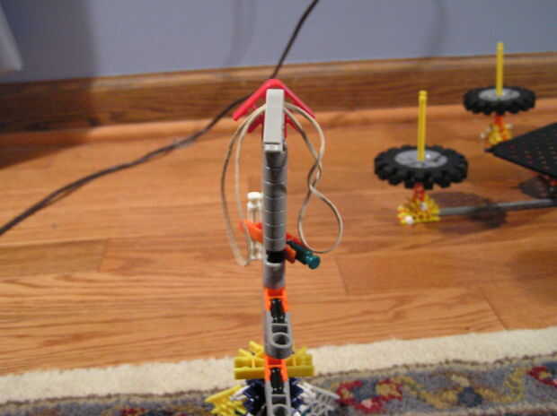 cuidadosamente colocar el cohete en las dos varillas asegurándose de que las piezas grises van en barra guía y el cohete sí mismo en la barra de lanzamiento.