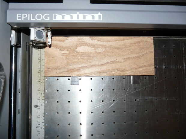 Utiliza 3.5" por 12" placa, que fue aproximadamente 1/4" de espesor para este signo. Coloque la tabla en la esquina superior izquierda del láser de Epilog.