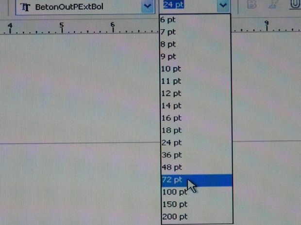 En la barra de herramientas, seleccione la herramienta texto. En la barra de fuente, seleccione el estilo de fuente deseado que ha esbozado Letras y un relleno de las letras. En la barra de fuente, seleccione el tamaño de fuente deseado.