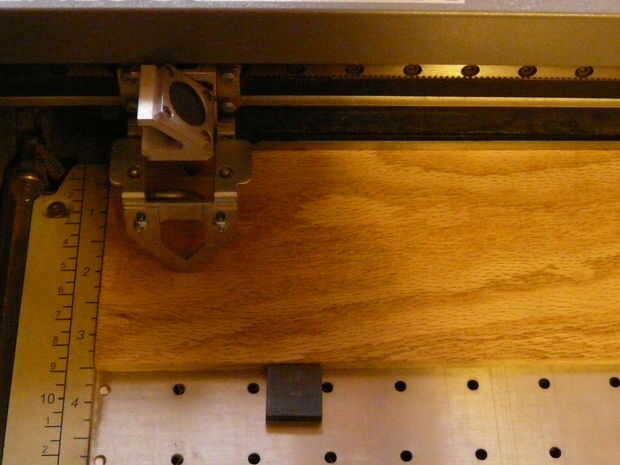 Fijar la máquina a la altura adecuada para tu signo con el medidor de altura. Saque el medidor y pulsa el botón de reset. Pulse Inicio en el equipo de Epilog. El maching entonces láser la imagen sobre el tablero.