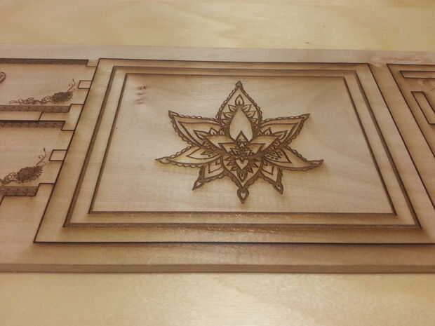 * Nota: Palo de rosa boliviano podría ser hasta un poco denso para el cortador del laser cortar en la primera pasada. Puede que tenga que hacer una segunda pasada