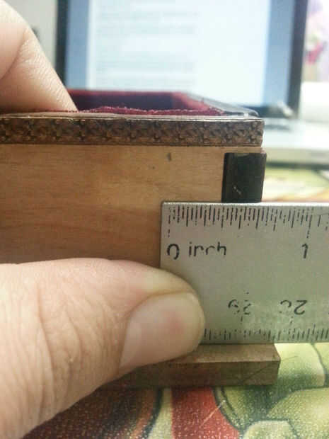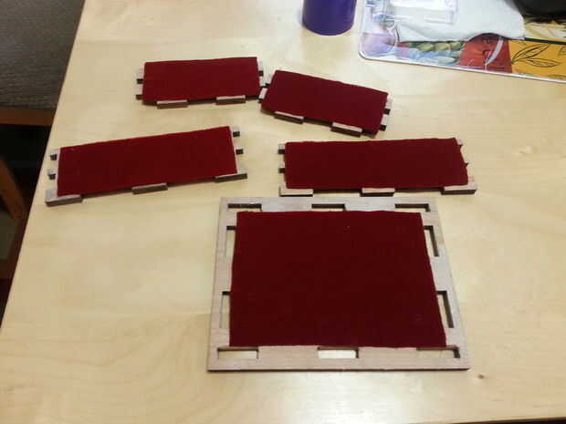 2) ir a su local Jo-Ann y conseguir alguna tela terciopelo para cubrir el interior de la caja. Se puede utilizar pegamento de aerosol o superglue como hice para pegar el fieltro a la madera. Al cortar los bordes del terciopelo de comenzará a desmoronarse. Usted puede hacer un borde liso ejecutando un mechero a través de ella 1/2 en el tejido.