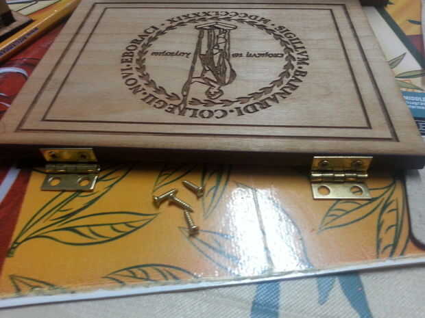2) para el cierre, hacer una marca justo en el centro de la placa superior y marque cuidadosamente donde los agujeros son para el seguro. Repita el mismo procedimiento para la parte inferior del pestillo. Luego con un destornillador añadir los tornillos. Voila! Tienes en tus manos una caja de joyería.