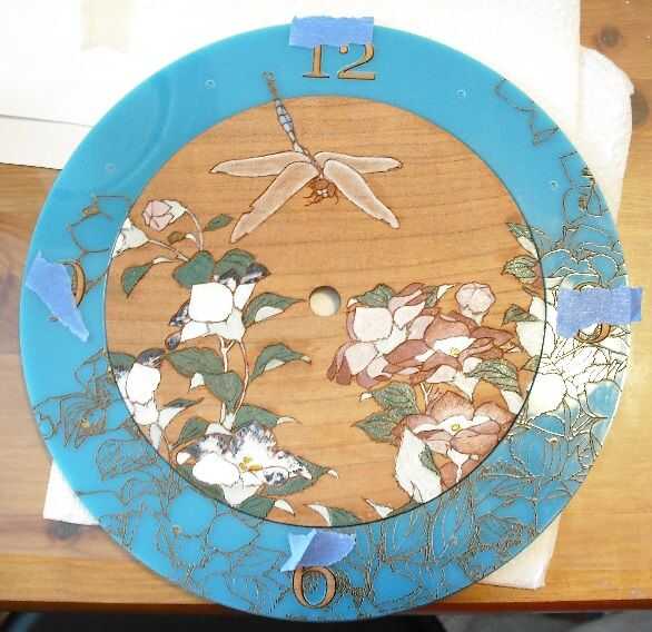 Esto es sólo una presentación del progreso de mi pintura. Yo había pensado originalmente para translucidez... pero se cometieron errores. Así, el trabajo de pintura sobre todo es opaco. Cuando terminé golpeó con un barniz de óleo temporal. Aunque para acrílico, desea medio acrílico, polyurathane o algún tipo similar de sellador. No sellar ni hacer nada en la parte posterior, porque la mitad de la espalda va a ser pegado al acrílico, quiero el pegamento pegado a la madera sí mismo y no el sellador. (Y la otra mitad sobre todo va a ser cubierto por el mecanismo del reloj).
