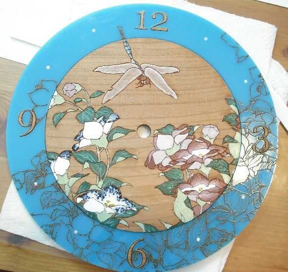 Mezclado algunas epoxi en un pedazo de papel de desecho, luego use un q-Tip para limpiar un anillo a lo largo de la parte exterior trasera el centro de la madera y a lo largo del interior de la hendidura en mi acrílico (aunque esto era demasiado resultado, usar con moderación). Después coloca la madera en su hogar final y rápidamente consiguió corregir la alineación de la imagen y rellena los pedacitos de papel de desecho en la brecha a 12, 3, 6 y 9 y que la madera realmente fue centrada y alineada correctamente.