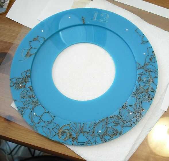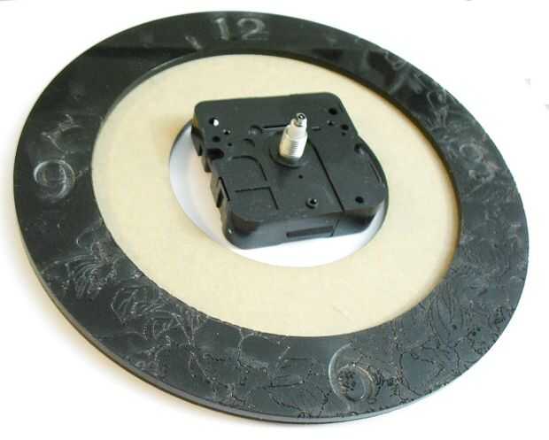 Yo también recortar un círculo acrílico de 6" con un 3" agujero en el medio, como soporte para la parte de madera de la cara y el 3" es la correcta para el mecanismo del reloj.