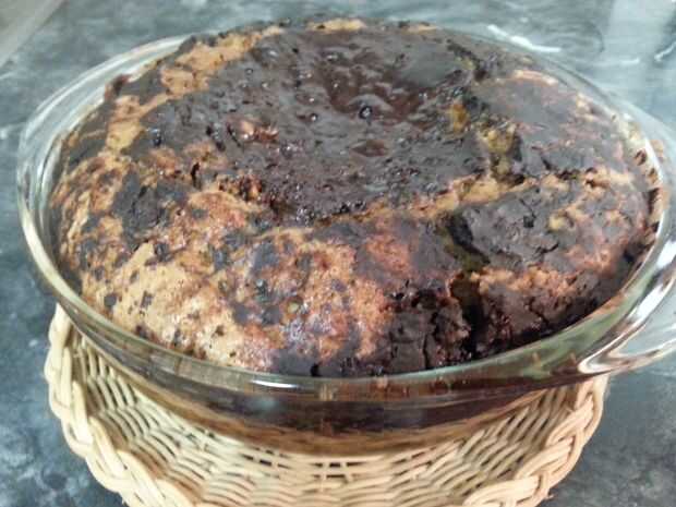 Mientras se cocinan, el pastel de Mocha se forma de la parte superior y el pudín de Saucy se hundirá hasta el fondo.