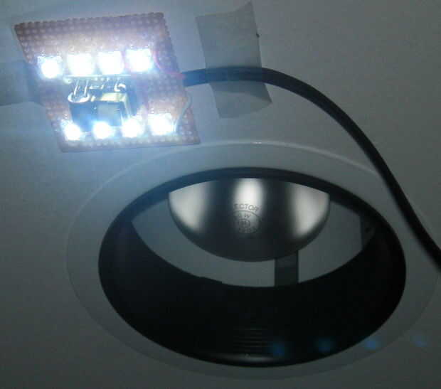 Aunque aparentemente muy azul, espectro de la luz LED es casi idéntica a la luz solar de mediodía-día y es lo que nuestros ojos ven mejor. Como un experimento, cubren la mitad de la imagen con un pedazo de papel y ver qué tan rápido los ojos ajustan al espectro de luz diferentes.