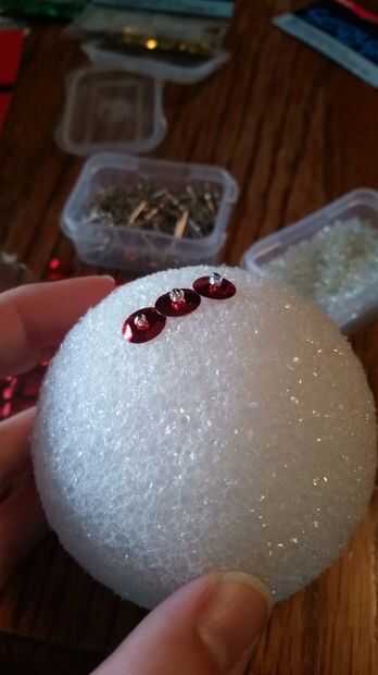 A continuación, deslice una lentejuelas del color deseado. Elegí que el lado convexo de la cara de lentejuelas hacia afuera, por lo que parece una bóveda pequeña en la superficie de la esfera. Me gusta más así, pero usted puede también enfrentar las lentejuelas lo contrario por lo que son como pequeños tazones de fuente en la superficie de la esfera.
