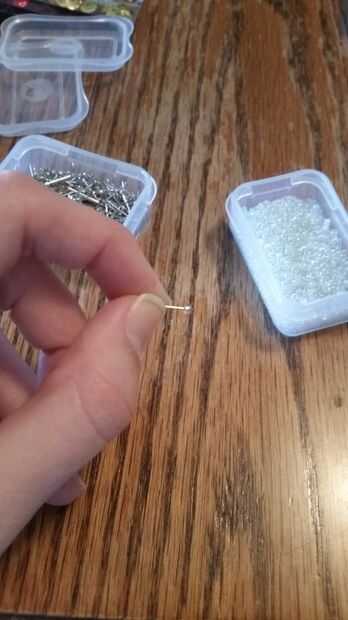En primer lugar, deslice un grano de semilla en un pasador de lentejuelas, como se muestra.