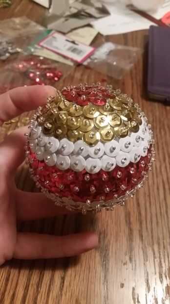 Otras opciones de acabado incluyen usando tornillos de ojal o fijación de la cinta al ornamento. Hagas lo que hagas, tiene que ser algo resistente. El ornamento es bastante liviano, por lo que no hace falta demasiado para hacer el truco.