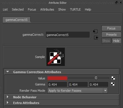 Incluimos este nodo en nuestro sombreado, en lugar de establecer directamente el color, ya que ahora estamos trabajando en un flujo de trabajo lineal. Para tener en cuenta esto, tenemos que corregir nuestros valores multiplicando el gamma por el recíproco de 2.2, o (1.0 / 2.2) que es.4545... repitiendo.