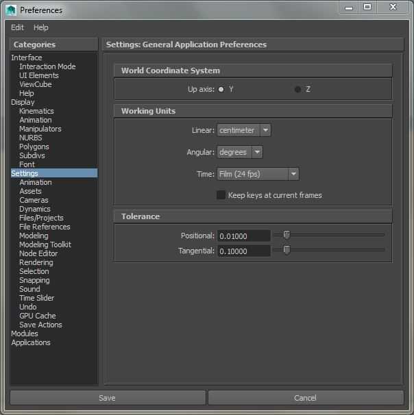 Asegurémonos de que estamos utilizando por defecto de trabajando unidades Maya de centímetros (cm).