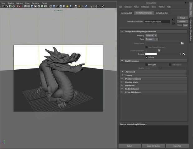 Por ahora, vamos a seguir con un studio perfecto blanco para confundirse con el fondo blanco. Con el nodo de forma "mentalrayIbl" ya seleccionado en el editor de atributo a la derecha