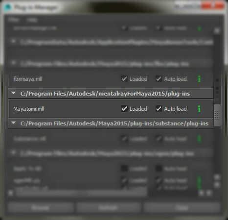 Ventana -> Settings/Preferences-> Administrador de plug-in -> Mayatomr.mll -cheque cargado y Auto carga