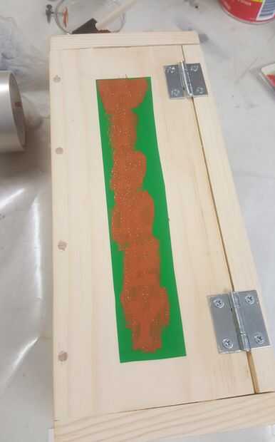 Aplicar el acabado: utilicé un aceite danés porque eso es lo que tenía en mano, pero hará cualquier acabado. (Cualquier acabado que elija depende totalmente de usted, las opciones son infinitas.) Aplicar el acabado, dejar secar el tiempo recomendado, les mueven a instalar el cierre de la caja.