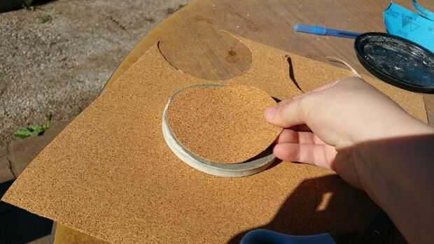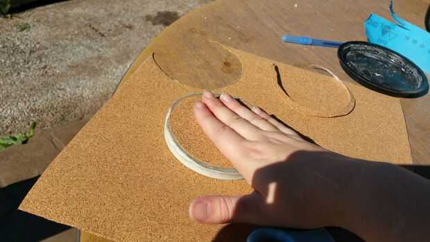Trace un contorno del molde sobre el corcho. Cortar el corcho y recortar para adaptarse a la montaña. Retire el forro adhesivo y presione el corcho en la parte posterior de la montaña. (No tiene que ser perfecto jajaja).