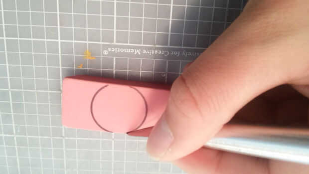 Usé un cuchillo exacto para cortar alrededor de la goma de borrar y obtener mi forma circular.