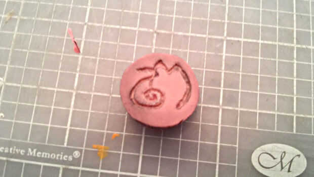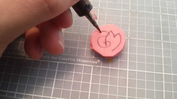 2. trazar las líneas de entintado/bosquejado del monograma en su borrador con el soldador -el soldador se derretirán la goma de borrar muy rápidamente así que ten cuidado.