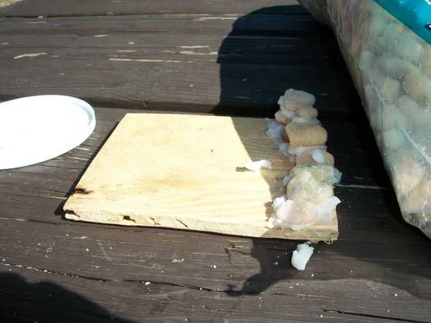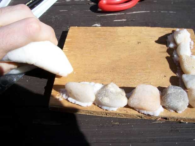 El otro método que utilicé fue poner el mortero de arroz en una bolsa de plástico y cortar una esquina de la bolsa. Esto me permitió exprimir hacia fuera. Mis hijos ha gustado utilizar la bolsa. La prefirieron sobre el método de cuchillo espátula plástico. La bolsa también fue útil para rellenar los huecos que necesitan más mortero.