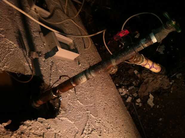 En este caso noté un buen giro en el tubo de la derecha contra la pared y una pequeña grieta que estaba goteando agua, y esto es por encima de mis principales. Hay otros Instructables en parches tubos, hacer los cortes y sudar así que a moverse rápido a través de las partes. No estoy tratando de competir con aquellos y son excelentes, que solo estoy mostrando un truco para hacerlo cuando agujereado. Así que perfora hacia fuera un pedacito de pared y corte la sección mal con un cortatubos. Uso un cortador de tubos, tanto divertido como herramientas son, ellos y tubería de cobre no van bien juntos... no obtendrá cortes rectos y cortes rectos son cruciales para prevenir fugas. Cortatubos cobre más cuestan menos de 10 dólares. Comprada uno hoy 8.50 al darse cuenta de lo que un desastre mi metal Rectificadoras corte rueda estaba haciendo. Utilizar técnicas de sudoración estándar para poner una nueva sección de tubo en y los acopladores, los necesarios, hasta el último bit que nunca paró de fugas. He intentado durante unos 5 minutos antes de darse cuenta que sería imposible y recordar este truco que mi antiguo jefe enseñó cuando yo era un niño un trabajo de verano del sudor en esta pieza.