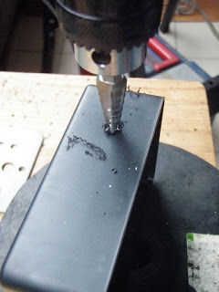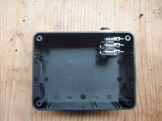 5.hacer tres agujeros extra de 11 mm en el lado de la caja de plástico para tomas de jack.