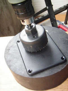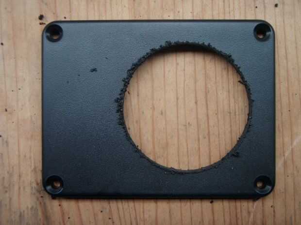 4.después el agujero del corte para el altavoz, hacer cuatro hoyos adicionales para pernos y tuerca.