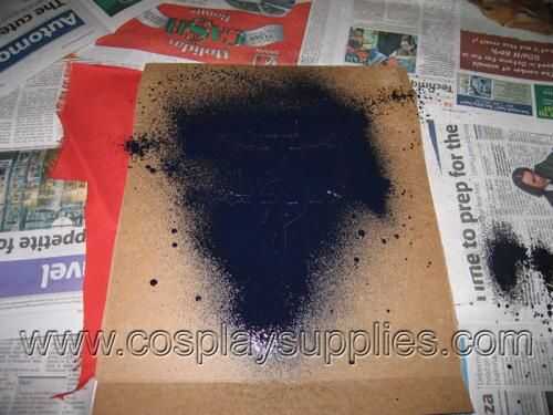 Comience rociando sobre un pedazo de toalla de papel, luego seguir utilizando incluso la presión en su plantilla. El aerosol de la plantilla va a salir más como una corriente de pintura en lugar de una niebla, así que no cunda el pánico! Hacer suaves movimientos incluso hasta el adorno está cubierto uniformemente. Ahora puede parecer muy desordenado, pero va a estar bien una vez que se seque. Espere 5-10 minutos, luego retire la plantilla con cuidado y dejó la pintura seca durante 1 hora.