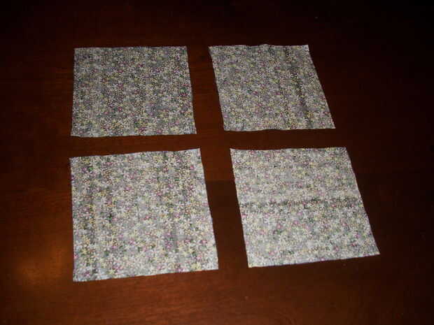 Lugar cuatro de la tela impresa cuadrados cara abajo sobre una superficie plana.