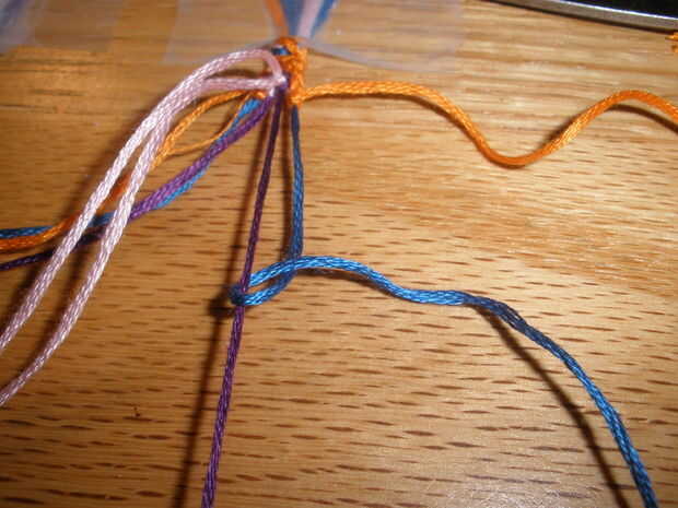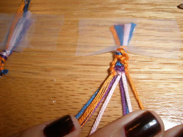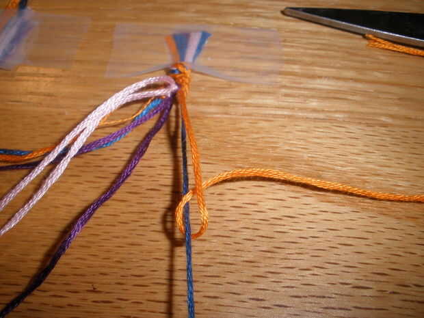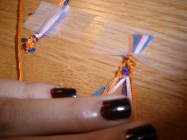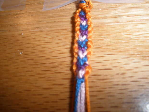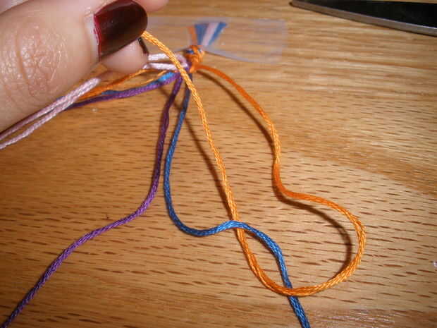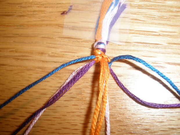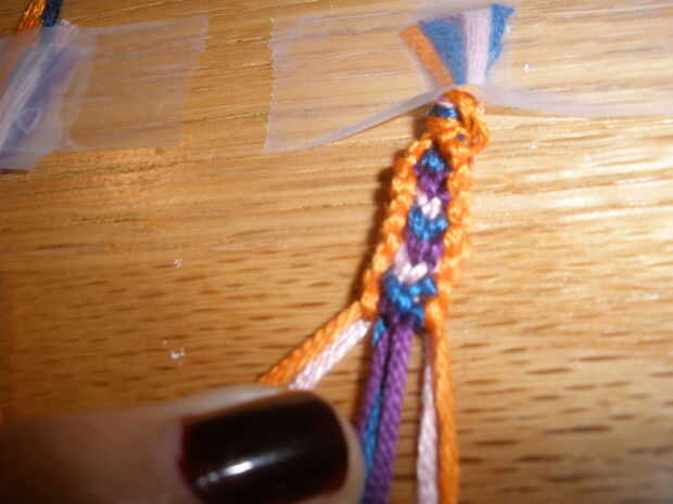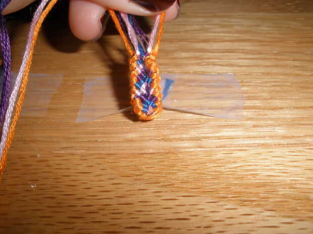 es el momento de hacer una pulsera de amistad! El diseño chevron! Mi diseño favorito! Si quieres aprender cómo hacer un diseño de rayas de caramelo, revise mi raya del caramelo instructivo!SuministrosSeda del bordado (4 colores)PortapapelesTijerasBot