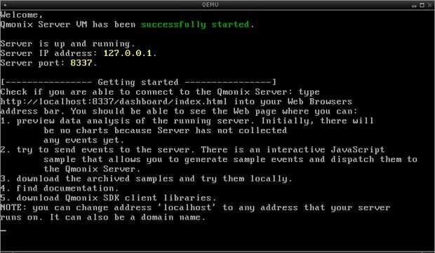 Con Qmonix analytics server en Linux con Qemu (4 / 4 paso)