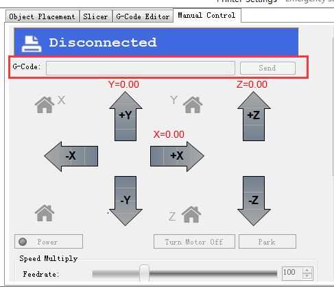 Paso 11: Establecer 3 puntos de sondeos (0,50)、(43.3,-25)、(-43.3,-25), el comando G-código para ajustar el cabezal de impresión para los puntos 3 y anote la distancia entre la boquilla y la superficie de impresión por separado.