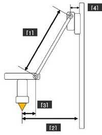 Distancia horizontal puenteada por varillas de empuje diagonal cuando está centrado en el efector.
