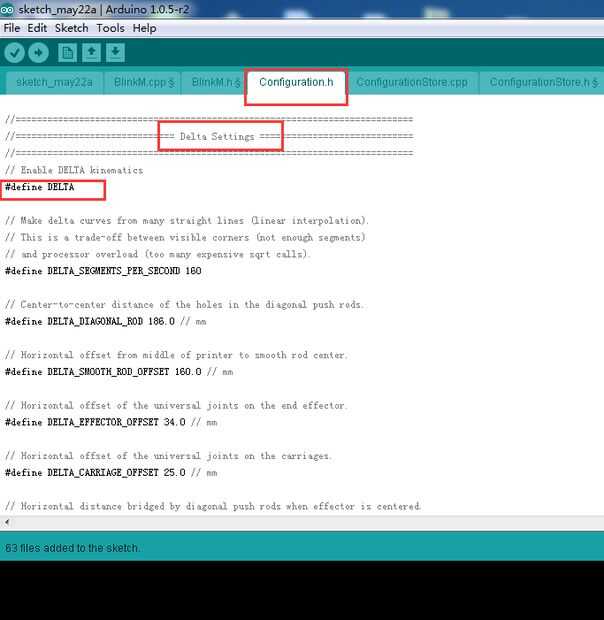 4. Haga clic en Configuration.h y encontrar ajustes Delta