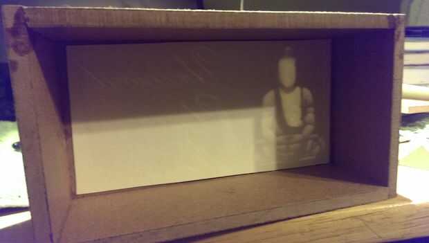 A continuación, cortar la cartulina por lo que cabe muy bien dentro de la caja. Basta con lo suficiente para cubrir lo que usted recortar. El pegamento hacia abajo hasta la parte posterior de la parte frontal de la pieza.