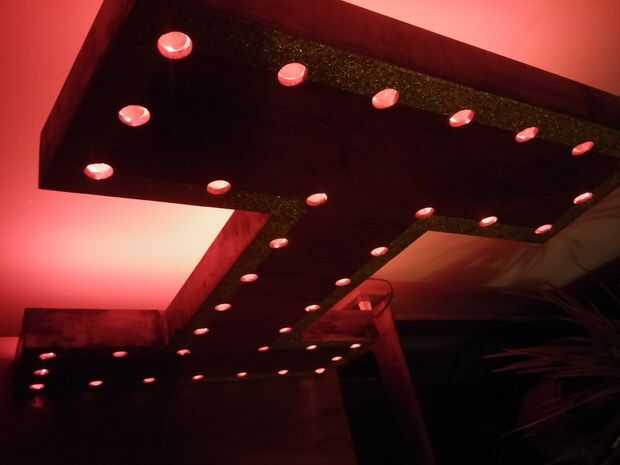 Luego basta con dar los 12v de la caja de control y encendido. Obviamente las 'luces' no son tan brillantes como sería con un real foco o led en cada lugar el color llega a través de pozo. En tenue luz parece impresionante y la silueta contraluz hace realmente se destacan. El espaciado de 1/2 pulgada de la pared hace ese efecto de resplandor detrás flotante.